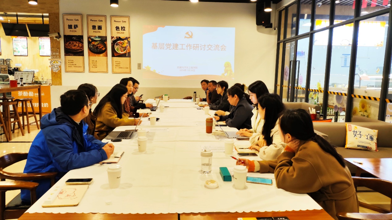 為貫徹落實習近平總書記關于黨的建設和組織工作的重要指示精神,推動基層黨建提質增效,1月18日,機械與汽車工程學院在后勤教工之家召開基層黨建工作研討交流會。學院黨委書記虞蓉、組織員葉寅,黨支部書記參加本次會議。會議由組織員葉寅主持。
