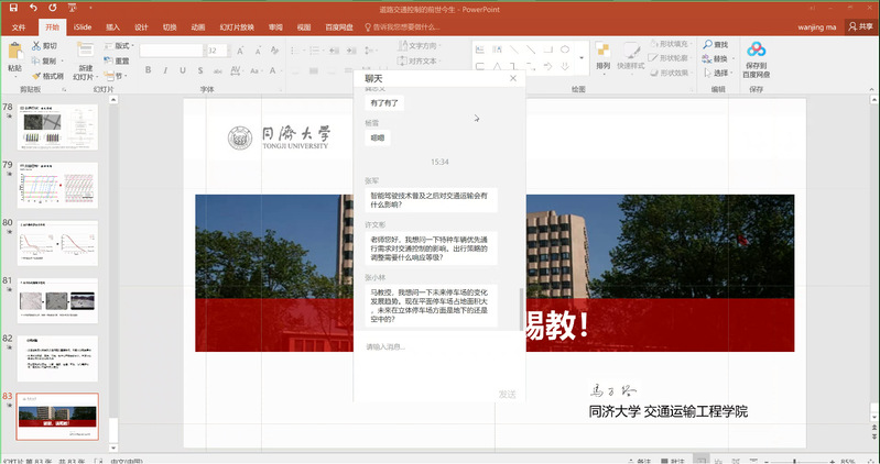 馬萬經教授采用由淺入深的方式,讓學員們對交通控制的發展有了初步的了解,在講座結束后積極地和學員們交流。馬教授用科學合理的語言解答了學員們存在的疑惑,并給學員們非常專業的建議。通過這次專題講座,學員們對交通控制的歷史和發展趨勢有了更全面的了解,此次講座為學員們的研究工作有很大的指導和幫助。