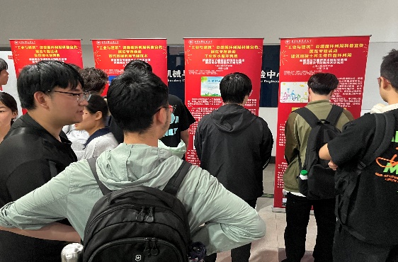 參展學生從 “再生循環鋁資源循環利用”、“余熱資源與冷凝水循環回收利用”、“工業廢水循環利用”、“蒸汽熱能利用節能技術”、“廢舊鋰電池回收”、“建筑混凝土再生骨料循環利用”六個方向聽取了介紹。