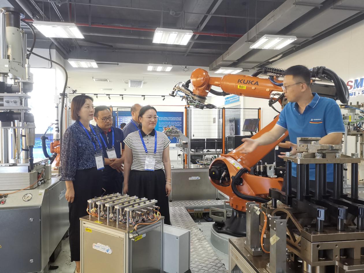會前,學院一行參觀了企業為萊茵檢測認證服務(中國)有限公司設計建設的工業4.0實驗室以及為德國西門子集團設計建設的數字化工業展廳。