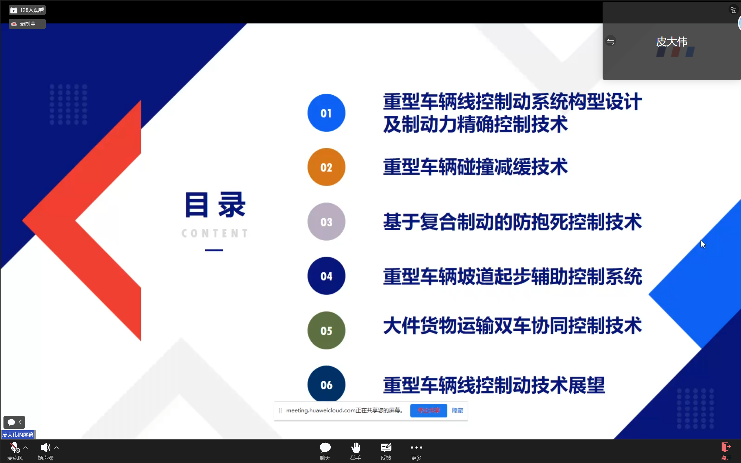 皮教授闡述了高性能制動系統及控制技術是制約重型商用車縱向動力學的關鍵瓶頸,而重型商用車的縱向動力學涉及安全性和經濟性,是保障運載任務的關鍵性能,也是實現干線物流、特種運輸等任務的關鍵運載裝備,對國民經濟和民生保障具有重要意義。皮教授展示了他在重型商用車輛縱向動力學及控制技術方面取得的學術成果,開拓了學員們學術思維的同時也激發了大家對于科研的學習積極性和專業探索精神。在互動環節中,皮教授針對高性能制動系統及控制技術相關問題做了詳細解答,學員們紛紛表示受益匪淺,對車輛系統動力學與控制研究有了更深入的了解。