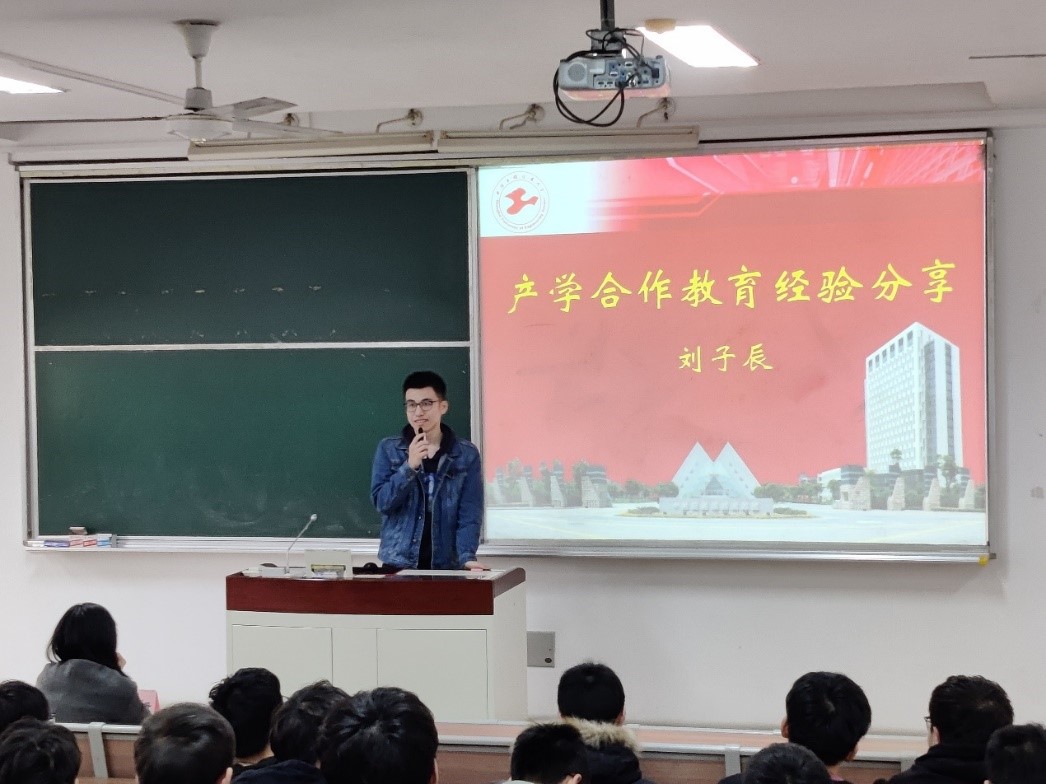 最后,學院2019年產學合作優秀業務報告獲得者劉子辰為學弟學妹們分享了自己在產學合作中的所想、所感、所獲以及做好產學合作教育的經驗方法。他呼吁學弟學妹們在參加產學合作教育的過程中,時刻保持主動學習的心態,珍惜機會,爭取獲得個人成長。
