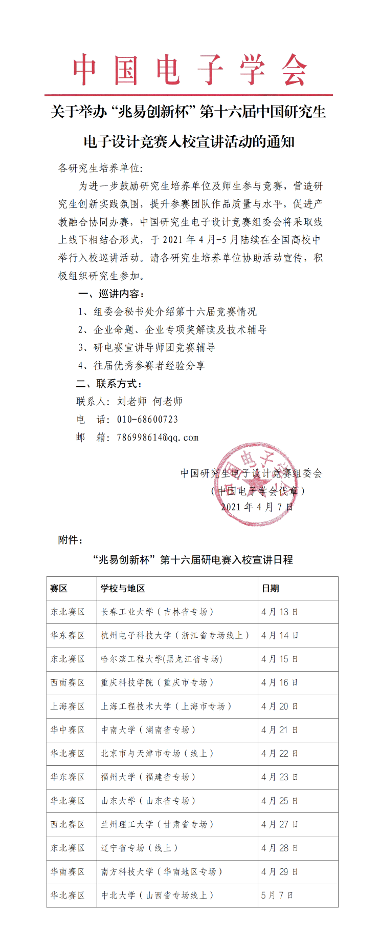 關于舉辦“兆易創新杯”第十六屆中國研究生電子設計競賽入校宣講活動的通知