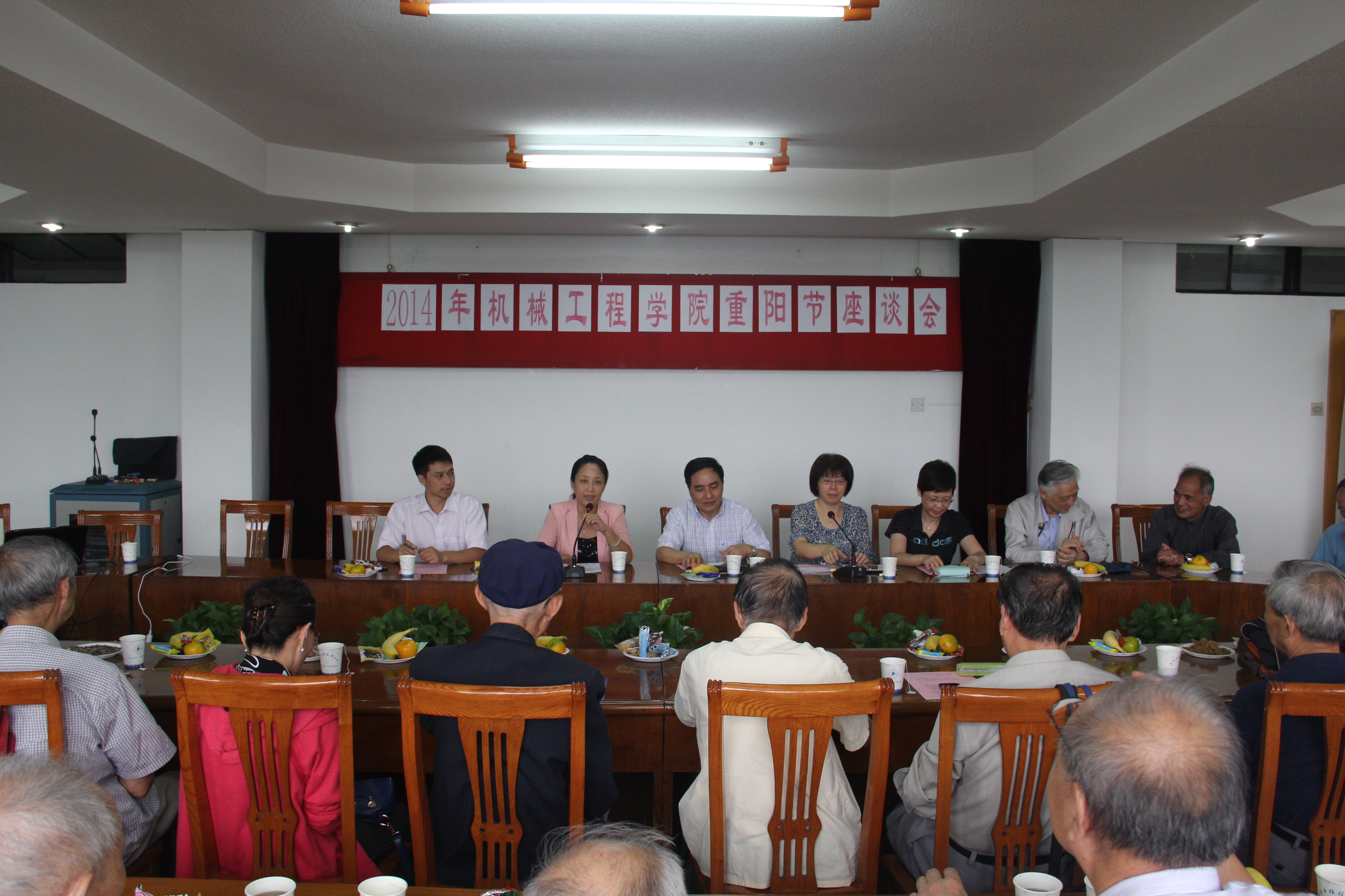 歲歲重陽,喜照吉祥。為大力弘揚尊老、敬老、愛老的中華民族傳統美德,9月30日下午,機械工程學院在仙霞路校區725會議室舉行2014年重陽節座談會。院長程武山、學院黨委書記虞蓉與學院的離退休教職工代表歡聚一堂,共慶國慶、重陽佳節。會議由學院工會主席周玉鳳老師主持。