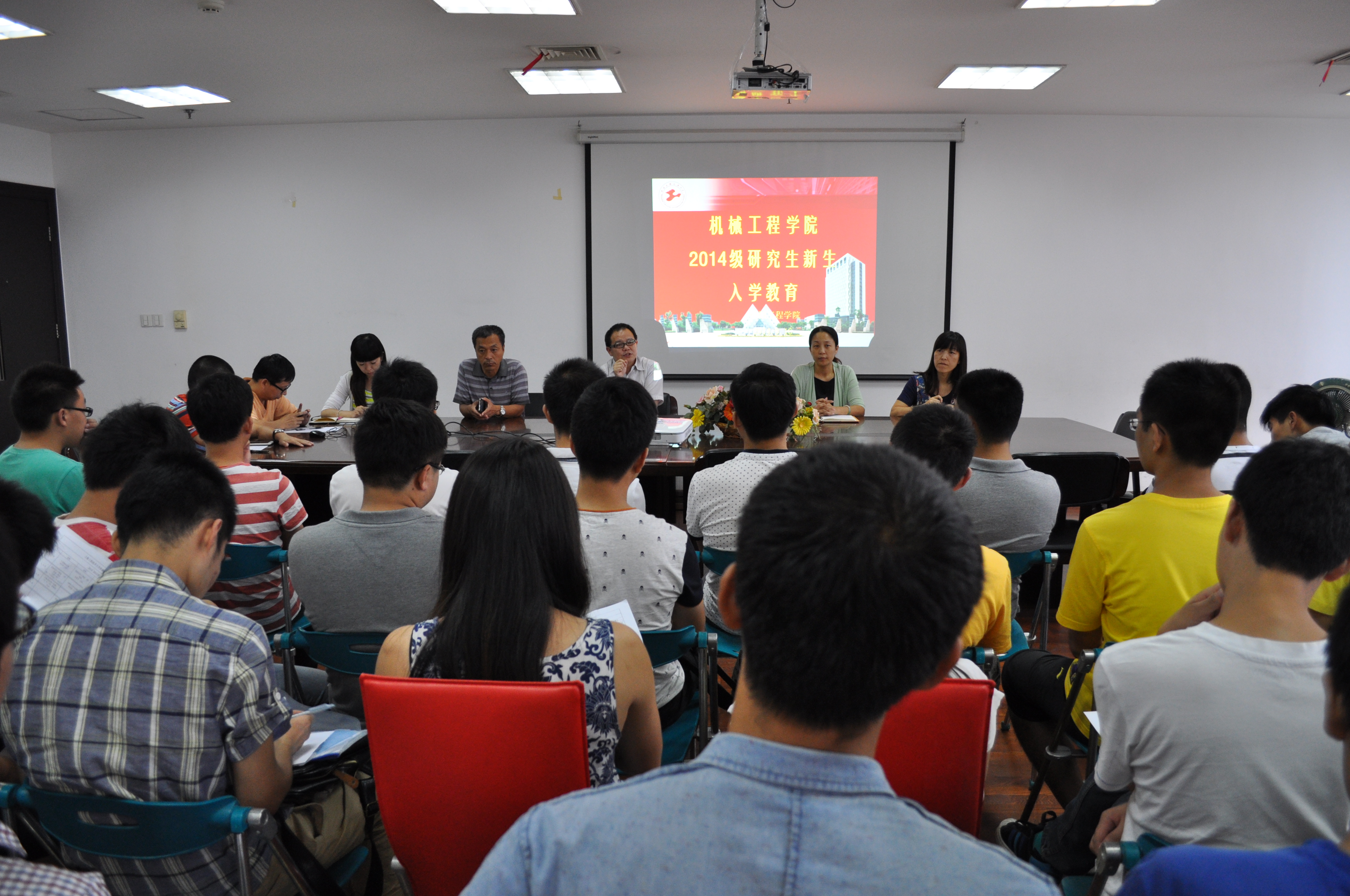 機械工程學院一直都有著敢為人先,力爭上游,絕不落下的作風,趁熱好打鐵,于是16號下午機械學院在行政樓1208會議室開始了對研一新生的入學教育,全院領導,師生都特別重視對新生的入學教育,出席此次教育活動的院領導有虞蓉書記,梅元媛副書記,茅健、潘穎副院長,碩士生導師們,負責研究生招生工作的老師們,輔導員等,此外還有55名研究生新生。
