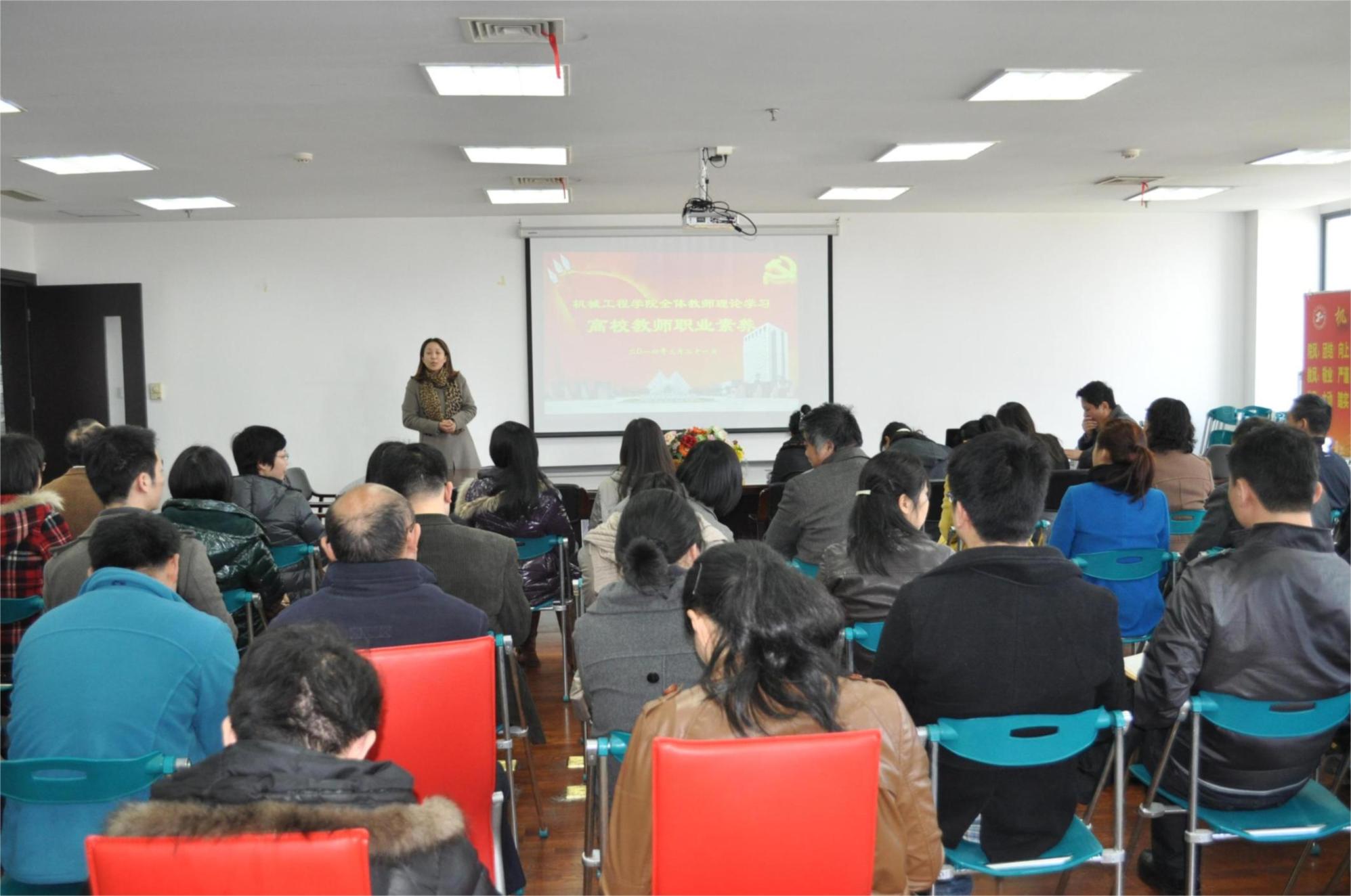 |   3月21日下午,繼學校黨的群眾路線教育實踐活動總結階段工作之后,機械工程學院黨委組織全體教師參加理論學習第二講—高校教師職業素養,學院全體教師如期參加了會議。會議由學院黨委書記虞蓉主持。 在會上,我院優秀教師代表陸文老師作了題為“高校教師職業素養”的專題報告。他從身正為范、要有愛心、更新理念和提升內涵四個方面深入淺出的對高校教師應當具備的職業素養進行報告。倡議老師們要以身作則,用自己的實際行動影響學生;呼吁教師要熱愛自己的工作崗位,把教育工作作為自己一生的事業;主張從改變學生學習態度入手,培養學生主動思考的意識;建議老師們要以多領域知識為紐帶,在最短的時間內獲取學生的尊重與信服。陸老師以生動的案例、幽默的語句感染了在場的所有老師,引起大家的強烈共鳴。 機械工程學院黨委從基層著手,以提升教師內涵為目標,為全院教師搭建了廣泛學習的平臺,虞蓉老師希望我院教師要提高對教師職業素養的認識,進而將認識上升為感悟;從細微處著手,用人格魅力影響和感染學生。 | |