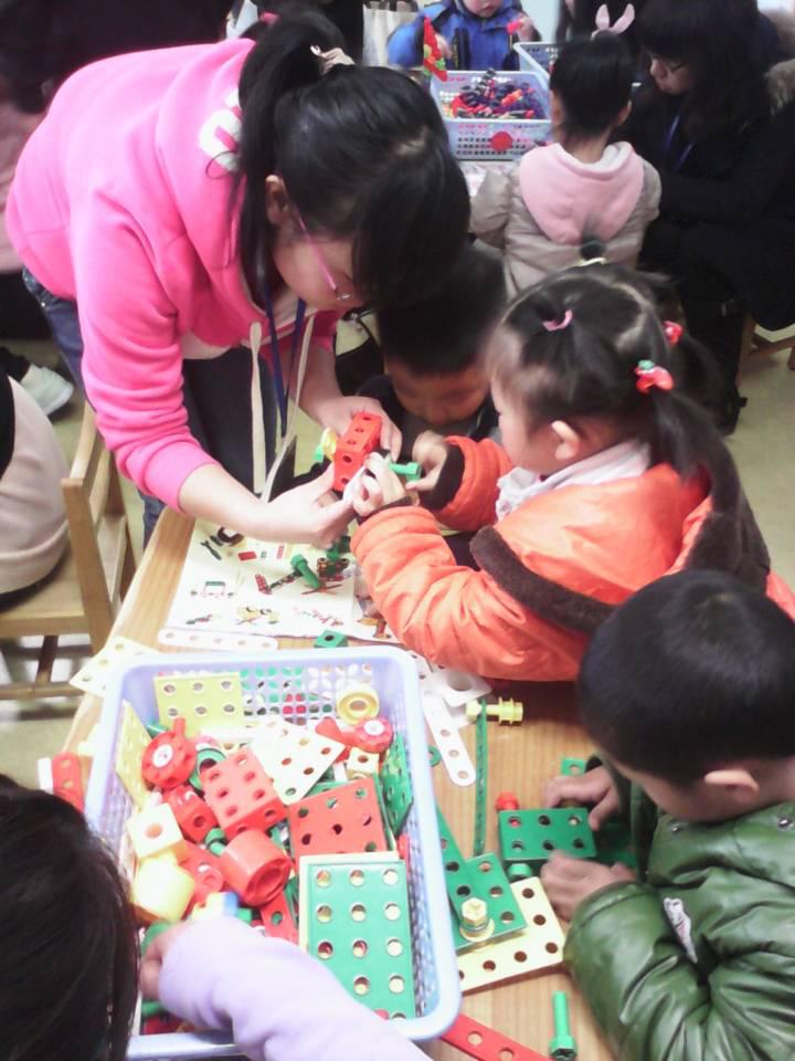 活動內容包括兩部分,一是對幼兒園內的活動墻進行藝術創作,畫一些卡通人物、動物的簡筆畫,由于小朋友們畫畫能力有限,是由志愿者完成,雖然不是多漂亮的藝術作品,但是也融入了同學們的汗水。第二部分是活動的重點,由10名志愿者和小朋友進行一對一進行塑料積木拼搭游戲,活動中我校志愿者細心指導小朋友們拼搭玩具,拼錯了和小朋友們一起尋找錯誤,不怕麻煩耐心教學。