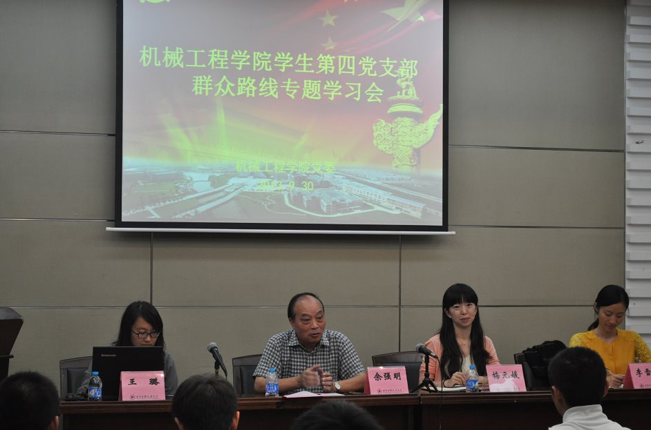 9月30日下午,機械工程學院黨委學生第四黨支部在圖文信息中心第四報告廳組織開展了黨的群眾路線教育實踐活動專題學習交流會。校內督導組組長余強明老師、學院黨委副書記梅元媛、組織員李雪苗、學生第四黨支部全體成員參加了此次會議,會議由學生第四黨支部書記王璐主持。