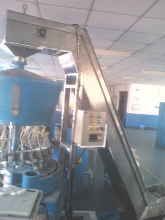 負壓裙邊提升機用于超細介質的輸送,傳送帶裝置安裝在封閉的傳送帶外罩,傳送帶外罩固定在機架上,在傳送帶外罩上設有進料口和出料口,供料裝置的出口與傳送帶外罩的進料口密封連接,物料可以從供料裝置不間斷地輸送到收料裝置,在傳送帶外罩內產生負壓,使得物料不會外泄;供料裝置的出口處設計了控制門,確保送料量和收料量保持相等;傳送帶由基帶和裙邊帶組成,有效防止超細物料側漏,減少了浪費,節約了成本。超細介質負壓裙邊提升機實現了節能降耗和綠色環保生產。