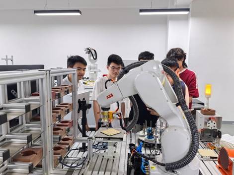 523日,“工業機器人綜合實驗”課程邀請了上海國詣機器人科技有限公司陳剛工程師對機器人實訓過程進行指導。陳剛介紹了工業機器人結構以及整體機械和電氣組成,并結合企業實際案例,向同學們展示了機器人示教編程方法,以及激光雕刻、碼垛、打磨、視覺檢測等功能的實際編程案例。通過工程師的編程示范,同學們迅速掌握了工業機器人編程的基本方法和典型應用。