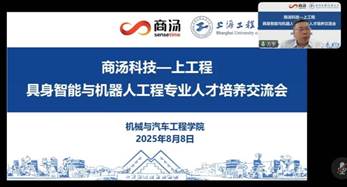 為積極應對具身智能技術引發的產業變革,培育機器人領域的應用創新人才,8月8日,機械與汽車工程學院與商湯科技線上舉辦具身智能與機器人工程專業人才培養交流會。學院院長方宇、副院長張立強、機械電子工程系主任朱姿娜,商湯科技院校業務商予科技副總經理余俠蕓及工程師代表等參會。