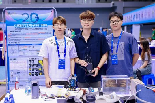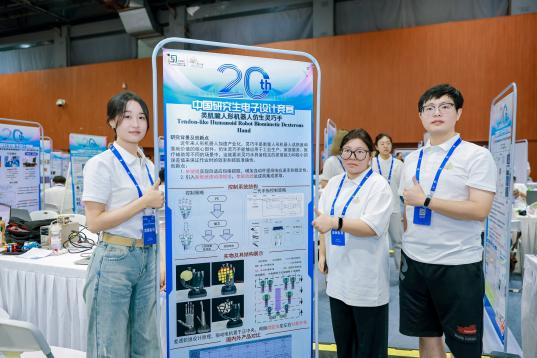 在近日舉行的第二十屆中國研究生電子設計競賽全國總決賽中,機械與汽車工程學院研究生陳敬啟、姚茂漩、李文鐸、許敏、戴龍杰、李航宇組成的兩支參賽隊伍,在陳賽旋老師指導下,憑借參賽項目“欠驅動仿生靈巧手與雙腱繩驅動手指”和“類肌腱人形機器人仿生靈巧手”分別斬獲技術類賽道國賽二等獎和商業計劃書賽道國賽三等獎。