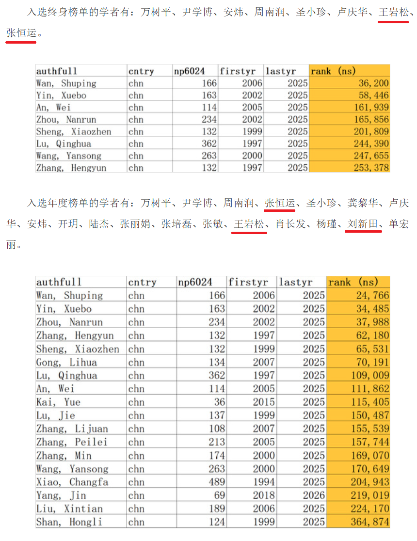 近日,美國斯坦福大學與國際權威學術出版社愛思唯爾共同發布了“2025年全球前2%頂尖科學家榜單”,車輛工程學科王巖松、劉新田、張恒運三位教授成功入選“2025年年度影響力榜單”。其中,王巖松、張恒運兩位教授同時進入“終身科學影響力排行榜”。