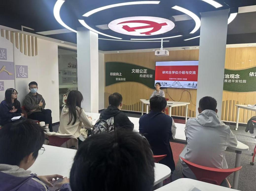 10月28日,機械與汽車工程學院在一站式學生社區服務中心舉辦研究生“駐樓導師工作站”系列活動——“研究生學位介紹與交流”和“研究生培養工作指導與交流”。活動邀請學院研究生秘書張柏薇、蔡曉琳做主題分享。學院學工組長董春亮主持。