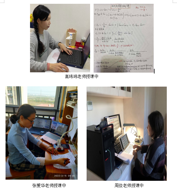 在輔導員老師的協助下,團隊快速建起了線上學習的平臺,針對各課程的實際情況,課程老師們均采用直播方式進行授課,分別利用騰訊會議、QQ群、微信群等平臺,確保選課的學生每一位同學都及時加入平臺,并把相關課件和電子課本發給學生。考慮到宿舍同學同時上不同的課,減少了學生回答問題的環節,增加了在線答疑時間。