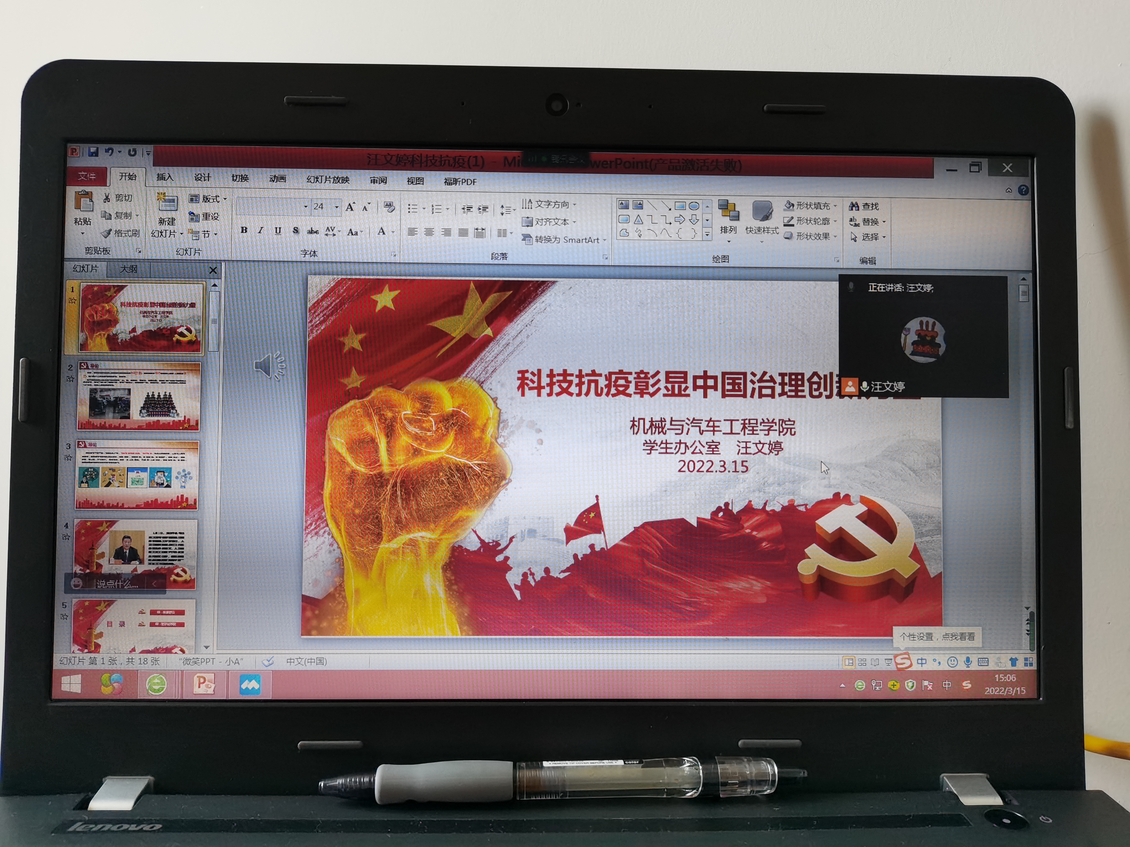 機械與汽車工程學院通過騰訊會議等形式開展全院的“愛國于心,榮校于行”主題班會,通過防疫心理微課程、身邊的“戰疫”故事、“戰疫貼士、守望相助”三種方式來進行,教育引導學生充分認識當前疫情形勢的嚴峻性復雜性,主動配合上級疫情防控管控措施,增強愛校榮校情懷,將疫情防控與愛國主義教育、社會責任教育、愛校榮校教育深度融合,激發學生愛黨愛國、愛校榮校的意識和熱情。