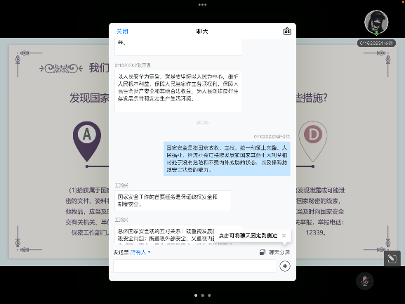 公開課后,機械與汽車工程學院通過易班、程園機械汽車人微信公眾號、開設國家安全教育專題專欄,進一步加強在學生群體中的國家安全教育宣傳。輔導員楊彥琛組織開展主題班會,向同學們介紹“什么是國家安全”,為什么要設立國家安全日,“十個堅持”、“五個統籌”;以及大學生如何維護國家安全。輔導員蘇鵬源組織學生積極參與“國家安全日”互動,組織“國家安全知識線上競答”,用充滿趣味性和互動體驗性的學習方式讓學生通過云端知識大比拼進一步鞏固公開課學習效果。同學們紛紛表示,通過學習總體國家安全觀,進一步認識到維護國家安全的重要性,將用實際行動維護國家安全。