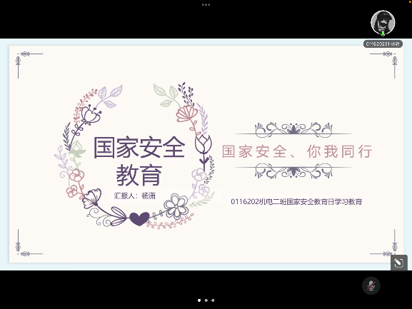 機器人工程專業曹慶豐同學在學習后說到:“4月15日,是國家安全教育日,而就在這次通過學院組織的系統學習,我全面的了解到了生物安全,技術安全,軍事安全等等對國家安全的重要性。同時,我也深切了解到了,自己作為一名大學生在維護國家安全方面負有的責任和使命。在今后的學習和生活中,我會時刻謹記自己的初心和使命。”