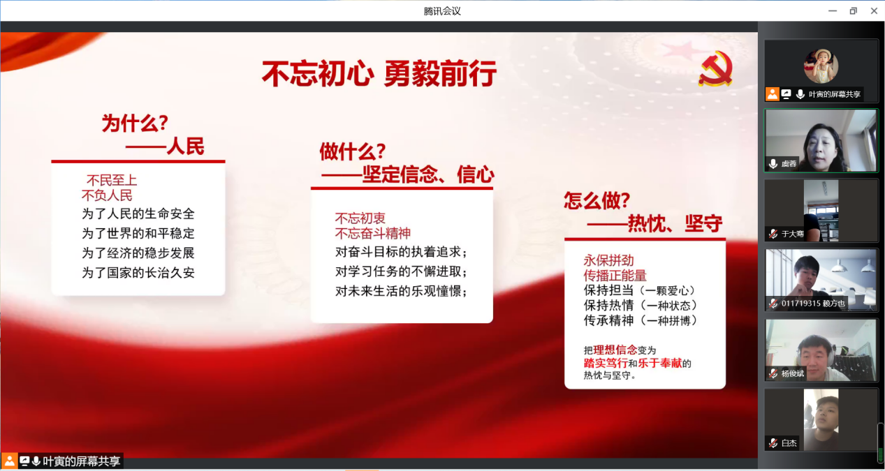 會上,虞蓉書記以“不忘初心 勇毅前行”為主題進行專項教育。她從“為什么要抗疫,抗疫做什么,應該怎么做”三個方面與全體參會黨員進行交流,引導學生黨員們堅定理想信念,增強奮進力量。她指出,中國共產黨始終堅持人民至上理念,始終做到不負人民,此次疫情中為了人民的生命安全進行了社會面動態清零總方針;她要求廣大黨員要堅定信念、信心,切實做到不忘初衷,不忘奮斗精神,要堅持對奮斗目標的執著追求、對學習任務的不懈進取、對未來生活的樂觀憧憬;她勉勵黨員們永保拼勁、傳播正能量,把理想信念變為踏實篤行和樂于奉獻的熱忱與堅守。同時,面對當前防疫的嚴峻形勢,虞書記對學生黨員們提出三點明確要求:一是各黨支部要建立學生黨員志愿者隊伍,黨員參與率100%,切實發揮黨員服務作用,為防疫工作貢獻力量;二是黨員帶頭落實各項防疫規定,包括嚴格落實“四圍”管理、帶頭做好個人防護,認真做到防疫規定的“三件套”“五還要”;三是黨員要充分關注身邊人,強化人文關懷。此次疫情給每一個人都帶來諸多不便和困難,在特殊時期,黨員同志要切實加強對身邊同學的關心關愛,攜手前行,共克時艱。