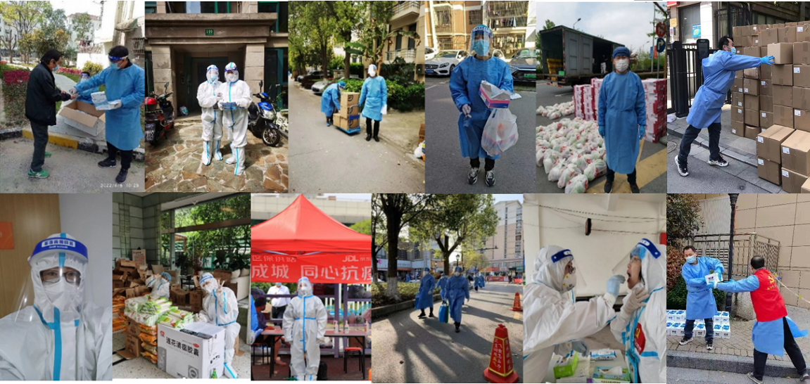 馬西沛、蔣春雷、閆娟、齊東平、楊麗、張艷偉、徐華源、徐之瑋、李傳昌、岳敏等老師,第一時間完成雙報到下沉社區,在各自社區擔任志愿者堅守抗疫前線,積極配合居委會開展各項疫情防控工作。這些黨員教師們負責社區核酸檢測現場信息登記、核酸檢測秩序維護、幫助沒有智能手機的老年人登記生成核酸檢測碼、為部分獨居老人做抗原檢測,封控期時居民垃圾回收、抗原試劑發放以及自測抗原的統計,參加社區物資的運送與分發,同時為居民做好垃圾收納和公共區域打掃衛生及消殺工作。