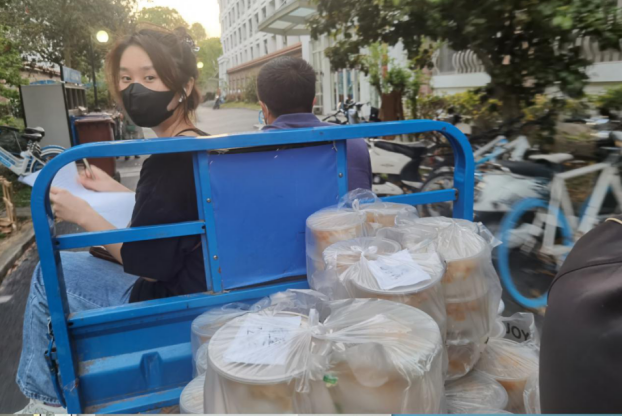 作為程園的一份子,勇于擔當,召之能戰。面對緊急情況,劉老師化身“大白”,整夜堅守在學生宿舍樓道里,守護著學生的安康,用實際行動共同保衛著程園;同學們足不出樓期間,化身“派送員”,坐上三輪車,逐樓逐棟為同學們送去餐食,笑著說一聲:“同學,你的“外賣”到嘍!”同學們連聲道謝;社會各界的抗疫捐助與學校的慰問禮包分發工作中,劉老師化身“分揀員”,協調現場各樓層長領取分發給同學們的物資。讓同學們真切地感受到來自社會各界及學校的關心關愛,也讓他們更加懂得理解與感恩,共同為守護程園,打贏這場疫情防控阻擊戰而努力。