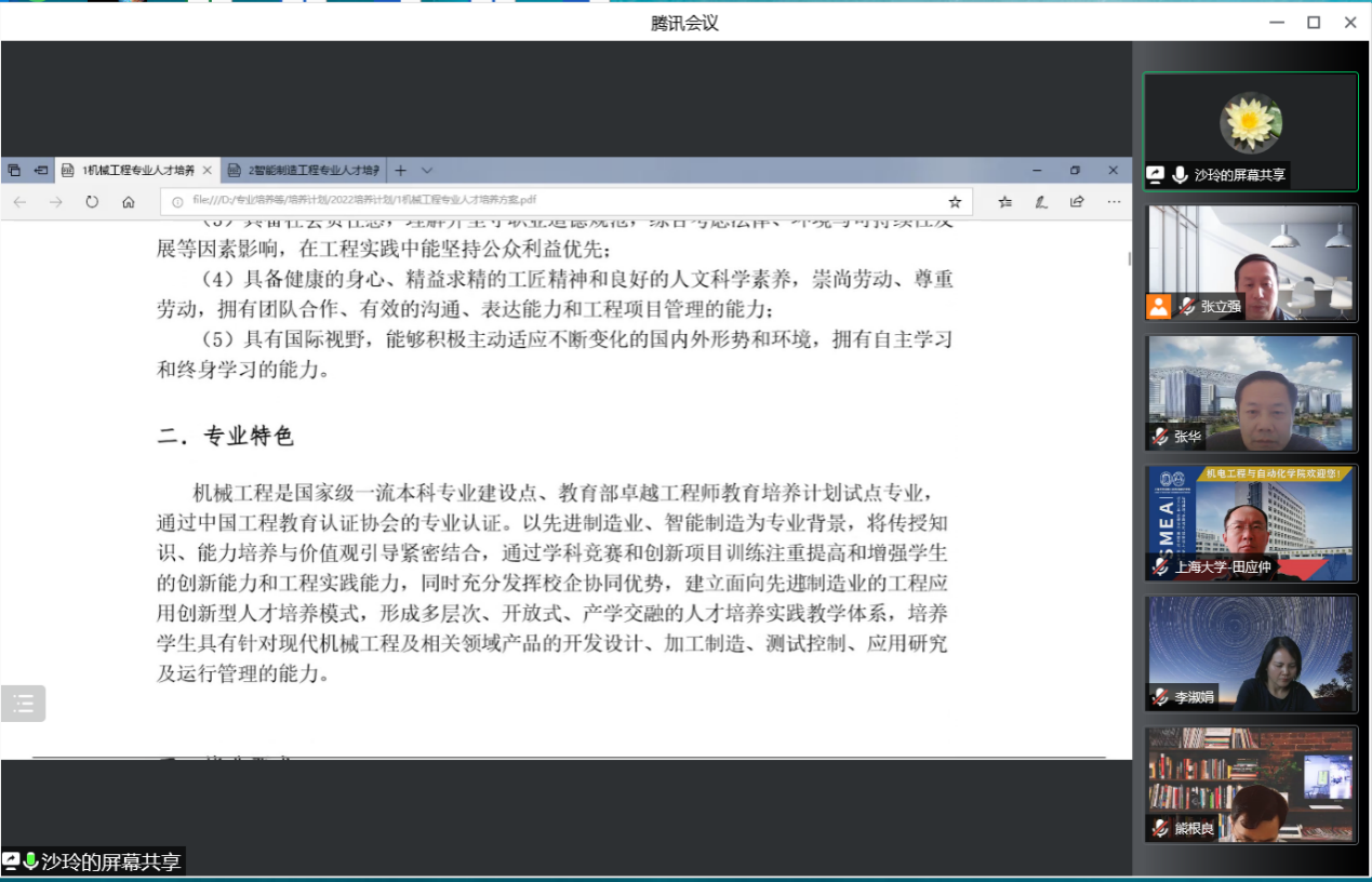 為進一步提高專業人才培養方案制訂的科學性和指導性,強化學校特色和專業特色,提升人才培養質量,5月19日上午,機械與汽車工程學院組織召開了2022版專業教學培養方案制訂工作線上研討會。會議邀請了東華大學孫志宏教授、西安理工大學李淑娟教授、上海大學蔡紅霞副研究員、田應仲教授、上海工程技術大學張華教授、上海理工大學王瑩教授、王波副教授、燕山大學張利鵬教授、百度智行馬立印高級工程師等專家,以及各專業負責人、教學主任參會,會議由學院教學副院長張立強老師主持。