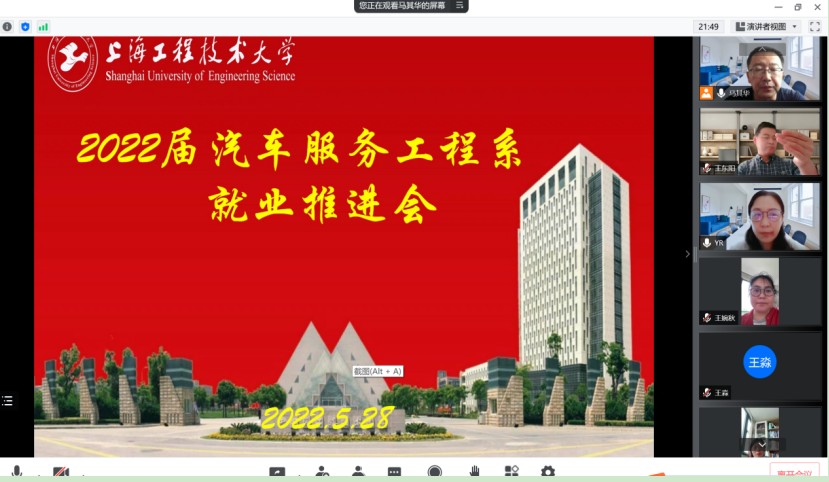為有序推進畢業生就業工作,幫助畢業生實現高質量就業,528日下午,機械與汽車工程學院汽車服務工程系線上召開2022屆畢業生就業工作推進會,學院黨委書記虞蓉、副書記王東陽、系全體教師以及就業輔導員參加了此次會議。會議由系主任馬其華主持。