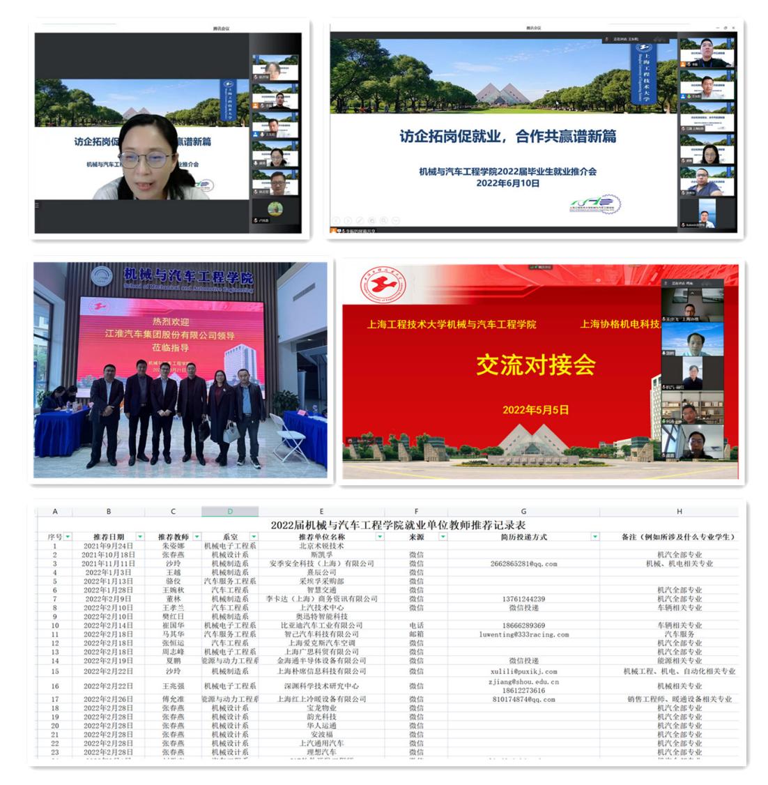 學院優化整合資源,加強信息共享,形成“全員推就業”局面。學院領導班子開展訪企拓崗促就業系列活動,分別召開“訪企拓崗促就業,合作共贏譜新篇”云端訪企拓崗暨畢業生推介會、校企合作交流會等,邀請了上海華力、上海蔚來等十余家知名企業進行宣講,在向用人單位推介幾十名優秀畢業生的同時打通校企就業合作渠道。學院積極開展行業專業招聘會,組織畢業生參加線上“校園面試會”,根據未就業學生實際情況,為其匹配和推薦就業崗位,做到學生愿意和企業滿意。學院教師微信群每天推送就業信息“不打烊”,形成“人人關心就業,人人促就業”的比超氛圍。其中,汽車服務專業江磊老師、機械設計系張春燕老師累計為學院畢業生開拓就業單位30余家,崗位300余個,簽約30余人。全院今年新開拓就業崗位達1500余個。此外,學院還積極挖掘長期合作企業潛能,學院就業輔導員主動對接華域汽車、延鋒、上汽等優質企業,點對點進行推介,將學生精準內推到公司。經初步統計,2022年,學院共開展線下線上招聘會4次、宣講會50余場,提供崗位3500余個,畢業生成功簽約739人。