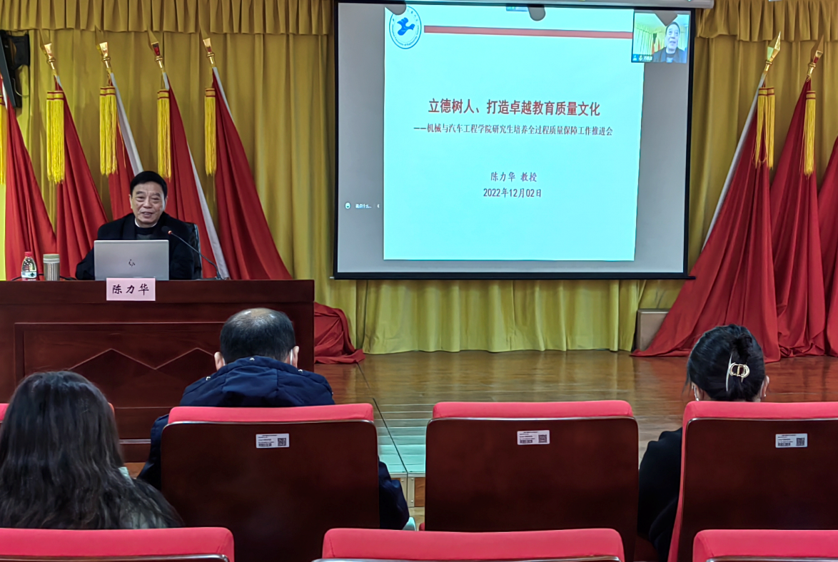黨的二十大報告強調,“育人的根本在于立德。全面貫徹黨的教育方針,落實立德樹人根本任務,培養德智體美勞全面發展的社會主義建設者和接班人。”為深入學習宣傳貫徹黨的二十大精神,面對新形勢,對標新要求,更好推動立德樹人工作更加扎實、更富成效地開展,12月2日下午,機械與汽車工程學院邀請陳力華教授在交通大樓8B222作了《立德樹人、打造卓越教育質量文化》專題報告。學院黨政班子成員、全體中層干部線下學習,學院近200名教師線上聆聽了報告。本次專題報告由學院黨委書記虞蓉主持。