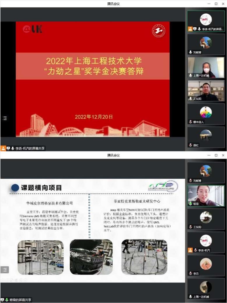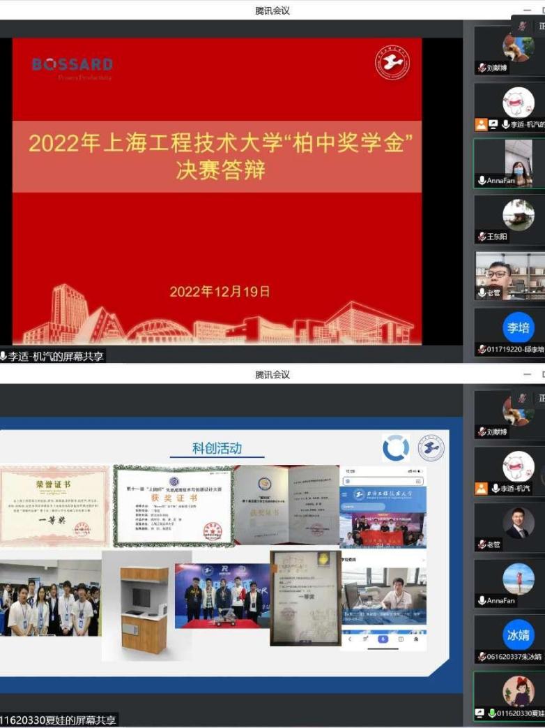12月19日、20日,機械與汽車工程學院線上舉行培土育人工程暨“柏中獎學金”,“力勁之星”決賽答辯會。機械與汽車工程學院黨委副書記王東陽、辦公室主任聶紅;柏中緊固件(上海)有限公司運營總監管雪峰、人力資源部經理范小娜;上海一達機械有限公司總經理胡早仁、綜合部經理羅楊姣、研發中心經理周敏作為決賽評委出席答辯會。2019級機械電子工程專業徐毛毛、2020級機械工程專業鄭佳樂等20位同學通過材料初審,晉級決賽答辯。參賽學生通過自我展示及評委提問環節進行角逐,最后評選出一、二、三等獎。兩場評選活動合計獎勵資助金額8.9萬元人民幣,最高獎項獎勵金額高達一萬元人民幣。