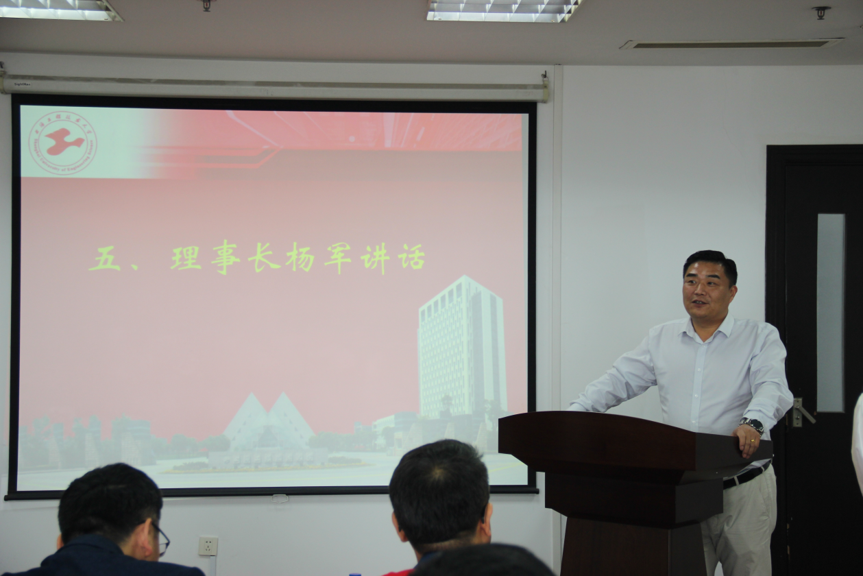接下來,理事長楊軍代表全體理事會成員發言,他表示:我們在母校獲得了立身的真知,掌握了搏擊的本領,放飛了收獲的希望,不論走到哪里,身在何方,官居何職,都將感激恩師的教誨與期望,牽掛母校的建設與發展,希望母校越辦越好。