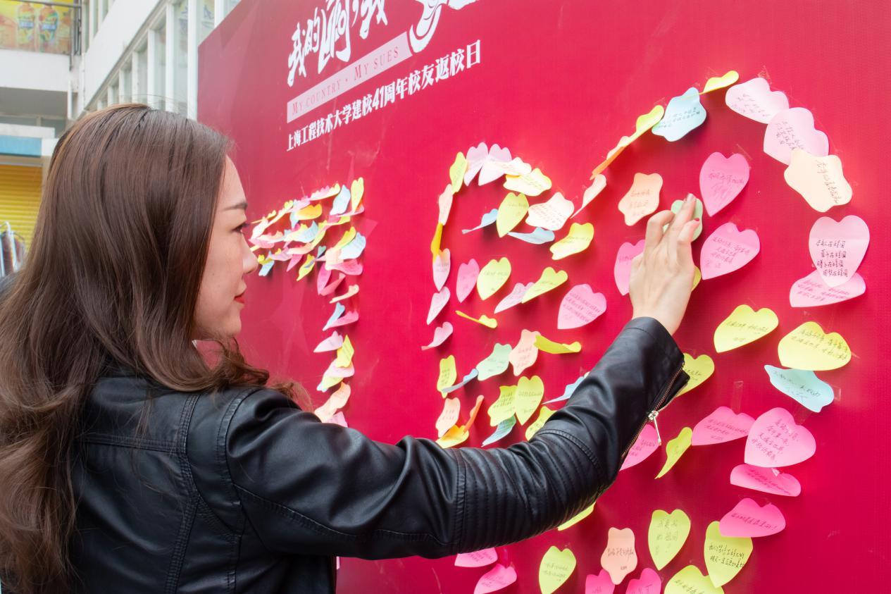 由上海工程技術大學校友總會主辦,我院校友分會承辦的“師生校友祝福母校”活動也是受到了大家的追捧,校友們紛紛在便貼上寫下對祖國和母校的祝福貼到寄語墻上,以此對建國70周年和建校41周年獻禮。