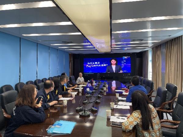 參觀后,雙方進行了座談交流。首先,介紹了各自黨支部建設情況,就黨建經驗進行分享交流。然后,機電系教工支部書記朱姿娜老師帶領所有黨員共同學習了二十大精神中的“中國式現代化”,通過視頻講解、交流研討等形式,更深入地學習了中國式現代化的內涵,以及為什么要走中國式現代化道路。學習結束后,雙方本著“資源共享、優勢互補”的原則,為發揮基層黨組織的戰斗堡壘作用,共同簽署了黨建共建協議書,就共同夯實組織基礎、促進雙方發展、開展科研交流等多方面進行校企黨建共建。