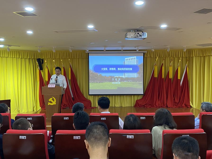 王校長以《大變局,新格局,推動高質量發展》為題,重點從世界危機帶來變局、中國經濟面臨挑戰、上海未來的發展走向、學校發展把握機遇四個方面進行了深入講解。他強調黨的二十大報告中提到:要加快實施創新驅動發展戰略,深入實施人才強國戰略,面對新形勢新挑戰,學校要緊扣高水平科技自立自強使命任務,積極融入長三角一體化經濟發展,提升學科建設水平和人才培養質量,要深入學習領會習近平總書記關于科技創新的重要論述和重要指示批示精神,引導黨員深刻領悟“兩個確立”的決定性意義,自覺增強“四個意識”、堅定“四個自信”、做到“兩個維護”,為學校教育事業發展做出更大貢獻。
