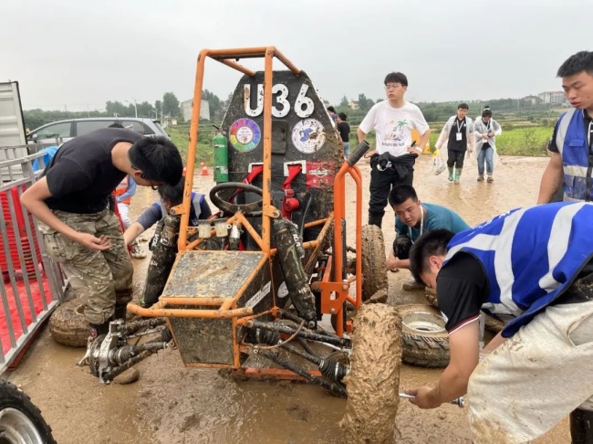 本屆大賽期間,襄陽連日陰雨,大雨沖刷后的泥濘賽道,難度升級,挑戰升級。龍騰巴哈車隊克服重重困難,在比賽中不斷挑戰自我,解決了一個又一個突發問題,展現了出色的理論、實踐技能及團隊協作能力,讓車隊一年的努力綻放了成果之花。