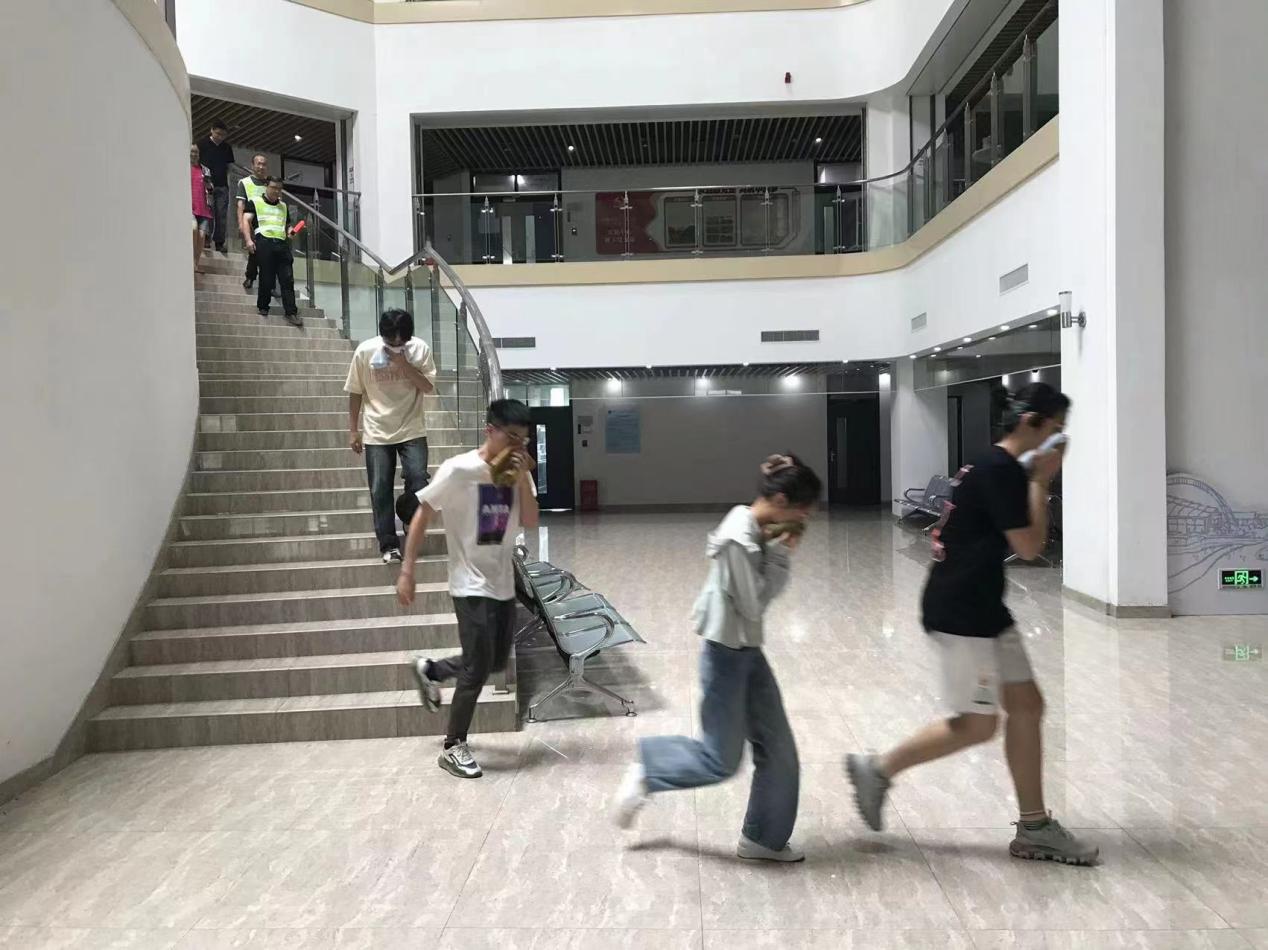 演練前實驗中心楊慧斌副主任先向同學們進行了實驗室安全教育,指出了實驗室目前存在的一些安全問題,近年來部分高校出現的安全事故。實驗中心馬西沛主任介紹了習近平總書記關于安全生產重要論述,并強調了火災逃生的注意事項以及演練要求。本次消防逃生演練模擬了8號樓三樓一實驗室發生火災,師生緊急疏散。演練開始后,各樓層引導員引導學生按照逃生路線進行逃生,指導并幫助學生做出正確逃生姿勢。消防逃生過程中師生們按照逃生技能,使用濕毛巾捂住口鼻,彎腰并小步快走,最終撤離到大樓門口安全地帶集中清點人數。整個演習過程緊張、有序,達到了消防演練的目的。