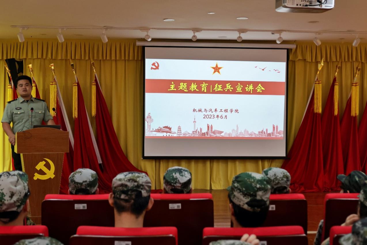 為了進一步開展習近平新時代中國特色社會主義思想主題教育,加強愛國主義思想教育。機械與汽車工程學院于6月25日在現代交通大樓8B222開展征兵宣講會暨退伍士兵分享會,部分參訓學生參會。會議由輔導員謝騰驍主持。