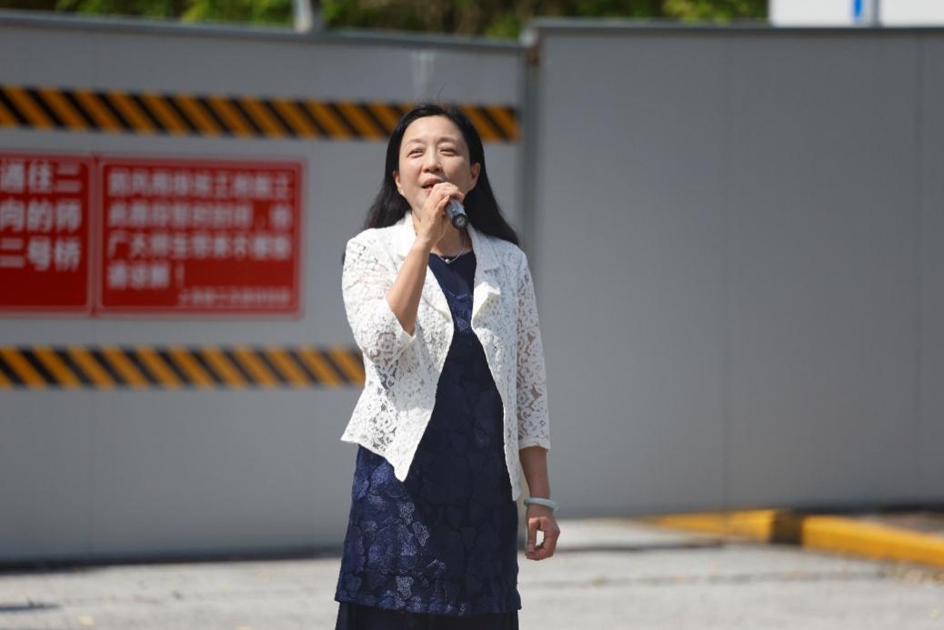 虞蓉書記肯定了前階段的軍訓成果,對教官們的辛苦付出表示感謝。她希望同學們繼續以飽滿的熱情和高昂的斗志投入訓練,虛心向我們優秀的教官學習;她要求同學們要在軍訓期間,磨練堅強意志,鍛煉強健體魄,力求精神、品格、體魄大豐收。