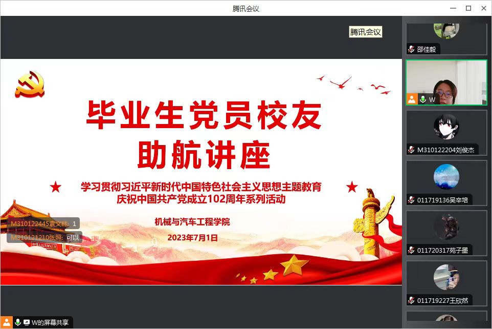為慶祝中國共產黨成立102周年,持續推動學習貫徹習近平新時代中國特色社會主義思想主題教育走深走實,弘揚偉大建黨精神,激勵學院廣大學生黨員牢記使命砥礪前行。機械與汽車工程學院黨委開展入黨啟蒙教育、畢業生黨員校友專題講座、“存初心”給未來的自己寫一封信等系列主題活動,展現了機汽學子青春向黨、學風建功、奮發有為的精神風貌,不斷增進對習近平新時代中國特色社會主義思想的政治認同、思想認同、理論認同、情感認同。
