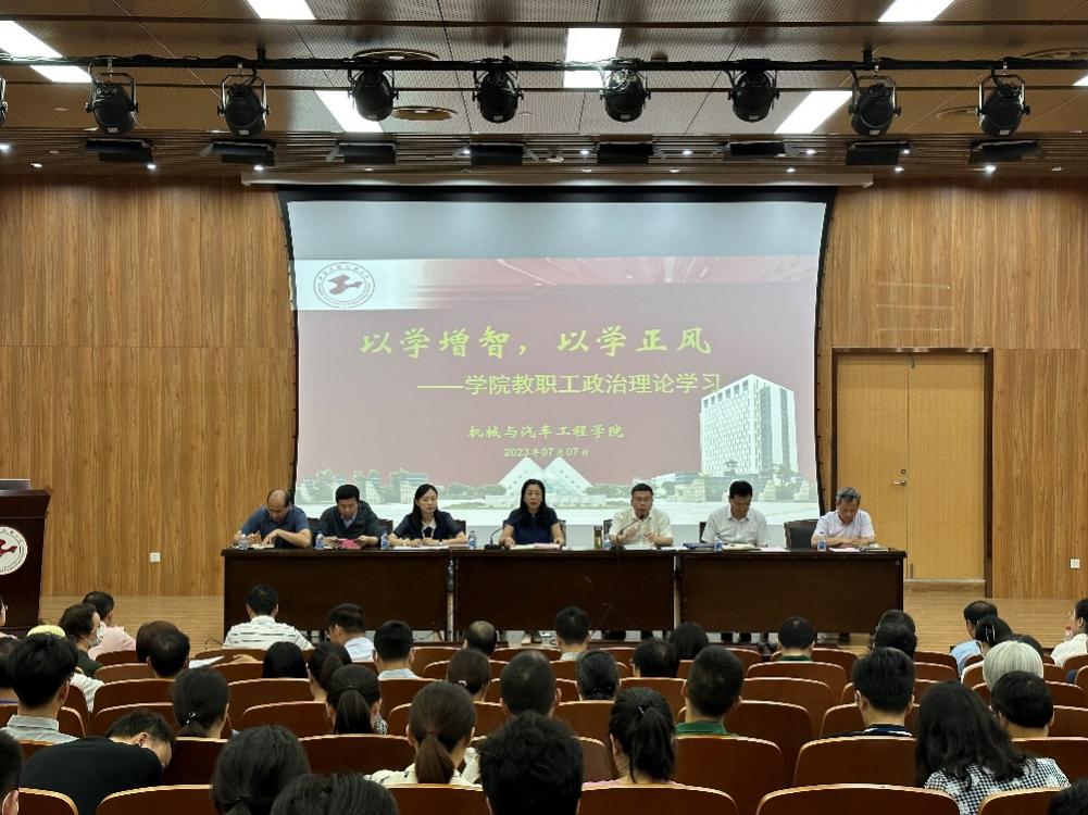 為推進主題教育走實走深,凝心聚力推動學院高質量發展。7月7日上午,機械與汽車工程學院召開“以學增智 以學正風”教職工政治理論學習大會。學院領導班子、全體教職員工參與會議。本次會議由黨委書記虞蓉主持。
