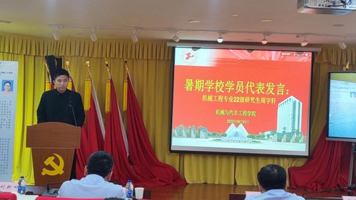 機械工程專業2022級研究生周宇軒代表全體暑期學員發言,他表示要珍惜此次暑期學校來之不易的機會,認真學習,刻苦鉆研,在以后的科研道路上加以運用,把創新、應用、提高作為學習的最終目的。