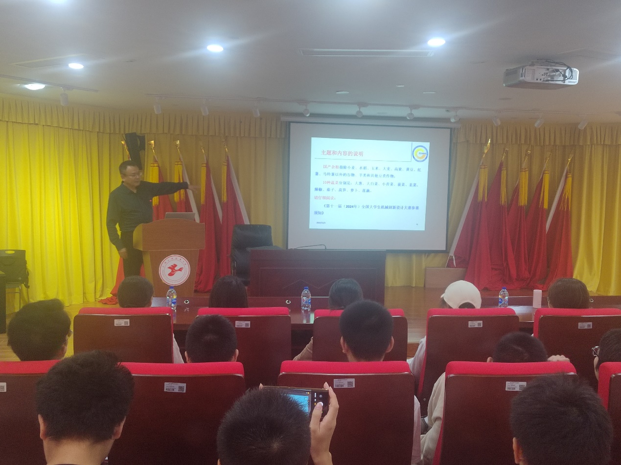王晶教授向與會師生詳細介紹了機械創新設計大賽近年來的發展與概況,并仔細解讀了本屆大賽的通知要求,對大賽主題進行了深度的分析。會上,王教授與師生們進行了熱烈的互動交流,并耐心解答了學生們提出的疑惑與問題。