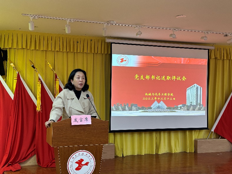 機械與汽車工程學院將利用好述職評議工作,持續強化支部書記第一責任人意識,不斷提高政治站位,自覺強化使命責任,圍繞學院發展大局,深化黨建守正創新,久久為功,善作善成,建強基層黨組織。