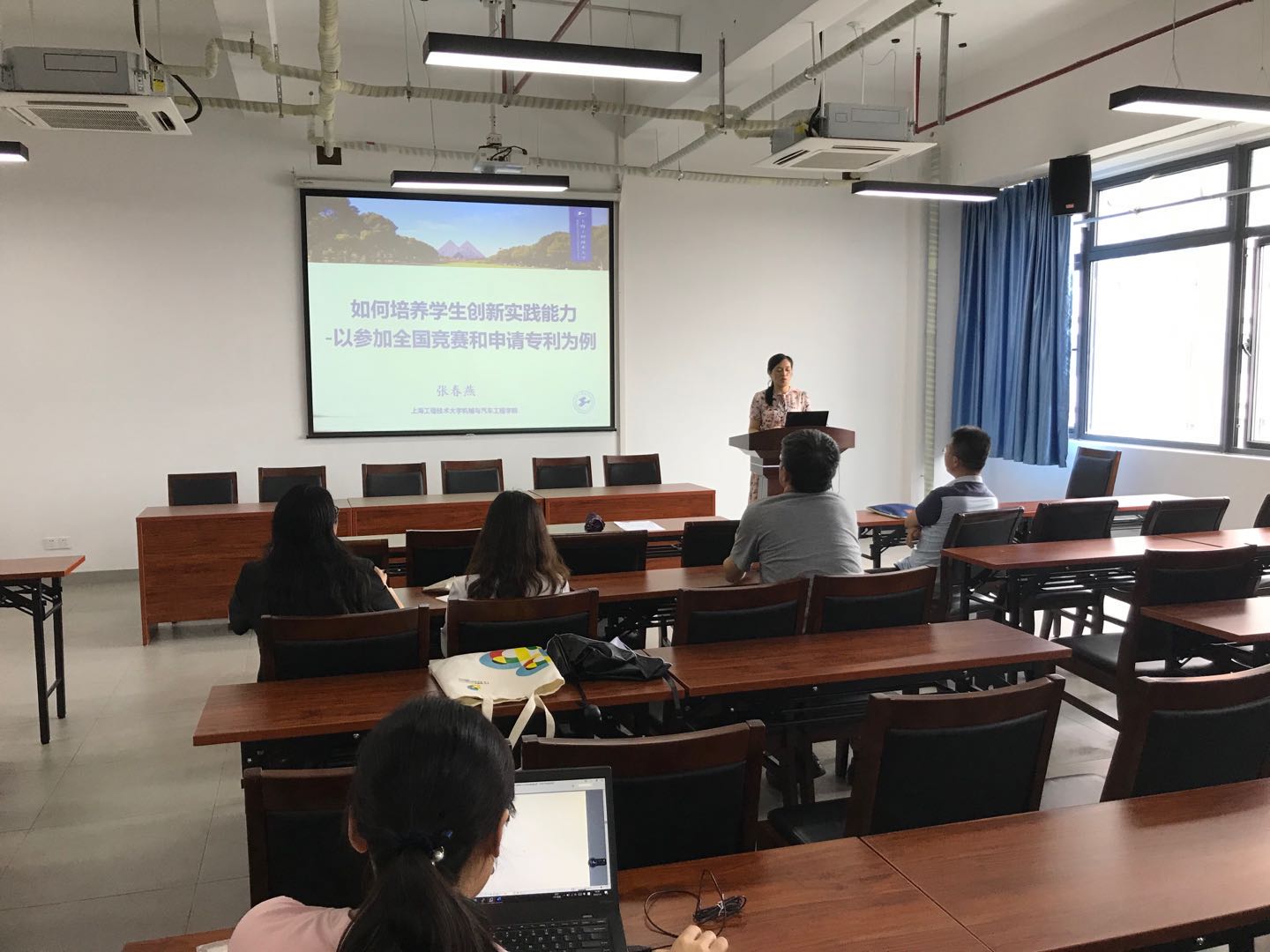 張春燕老師則以如何培養學生的創新實踐能力為主題,詳細剖析了研究生培養和本科生在創新能力培養方面的主要區別,并以自身求學經歷,說明工程應用的實用性背景在專利申請方面的重要作用,并和在場老師交流了學生管理和引導學生參加全國競賽的一些實戰經驗。