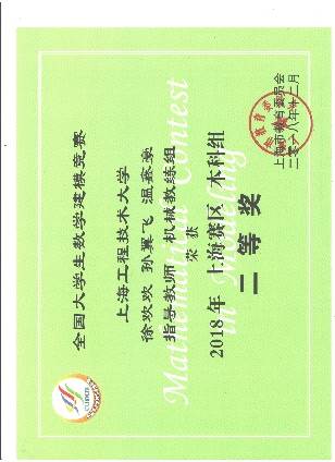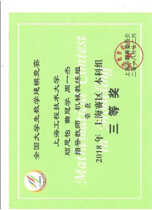 12 | 上海市大學生工程訓練綜合能力競賽 | 省部級特等獎 | 2018 | 上海市教委 |
