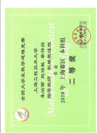 20 | 上海市大學生課外學術科技作品競賽 | 省部級二等獎 | 2017 | 上海市教委 |