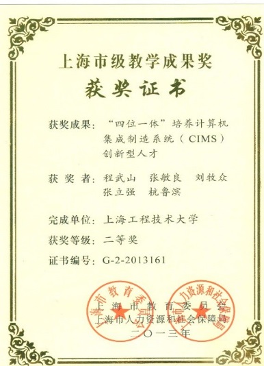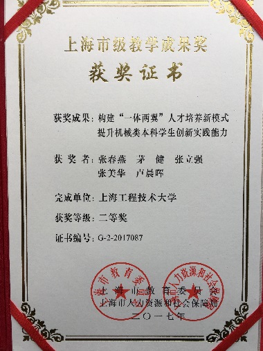 4 | 構建“一體兩翼”人才培養新模式提升機械類本科學生創新實踐能力 | 上海市教學成果獎二等獎 | 張立強 茅健 | 2017 |