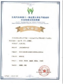 22 | 第十屆全國大學生節能減排社會實踐與科技競賽 | 國家級三等獎 | 2017 | 教育部高等教育司 |