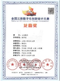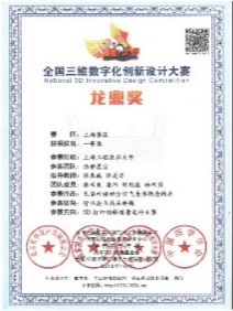 9 | 全國三維數字化創新設計大賽 | 國家級一等獎 | 2018 | 國家制造業信息化培訓中心、全國三維數字化創新大賽組委會、中圖學學會 |