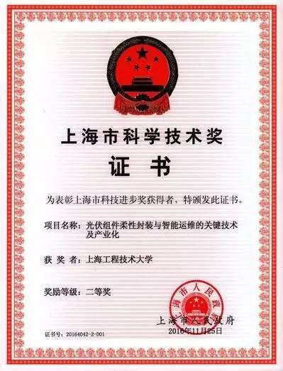 6 | 光伏組件柔性封裝與智能運維的關鍵技術及產業化 | 上海市科學技術進步二等獎 | 黃曉波 | 2016 |